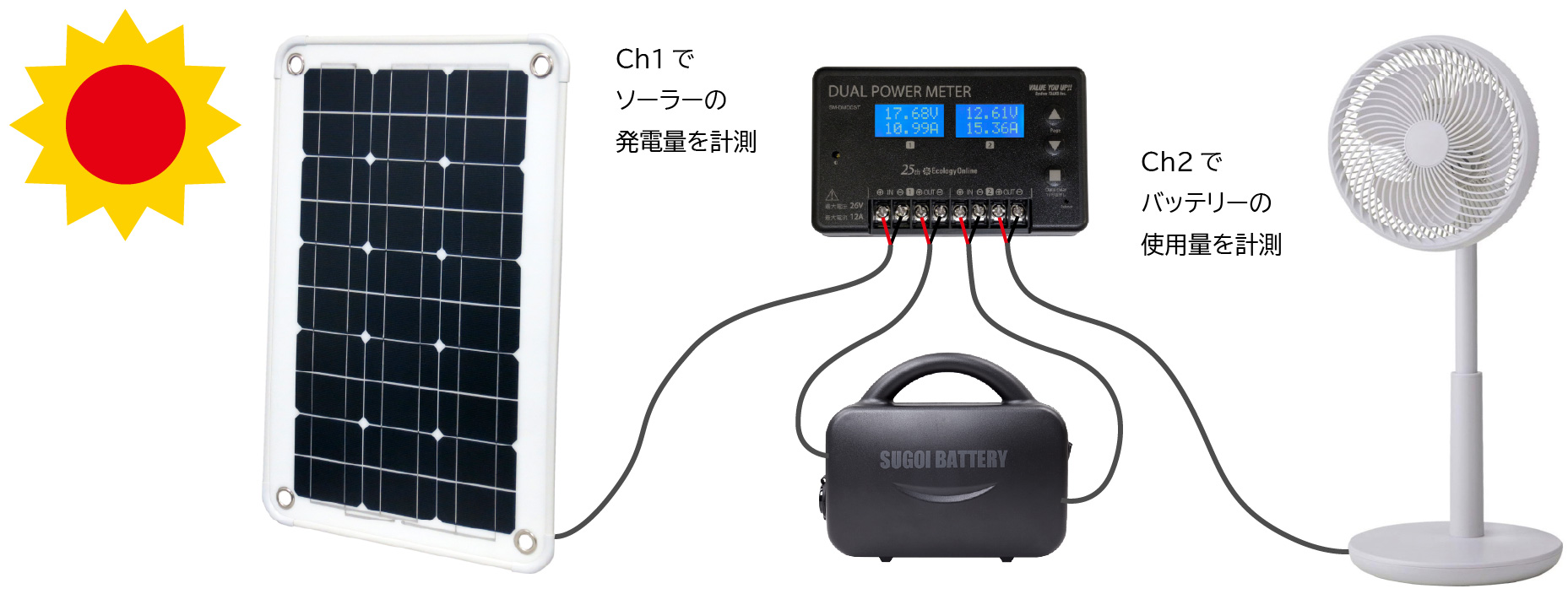 2つの電源ラインを同時にモニタリング!積算メモリ保存機能!